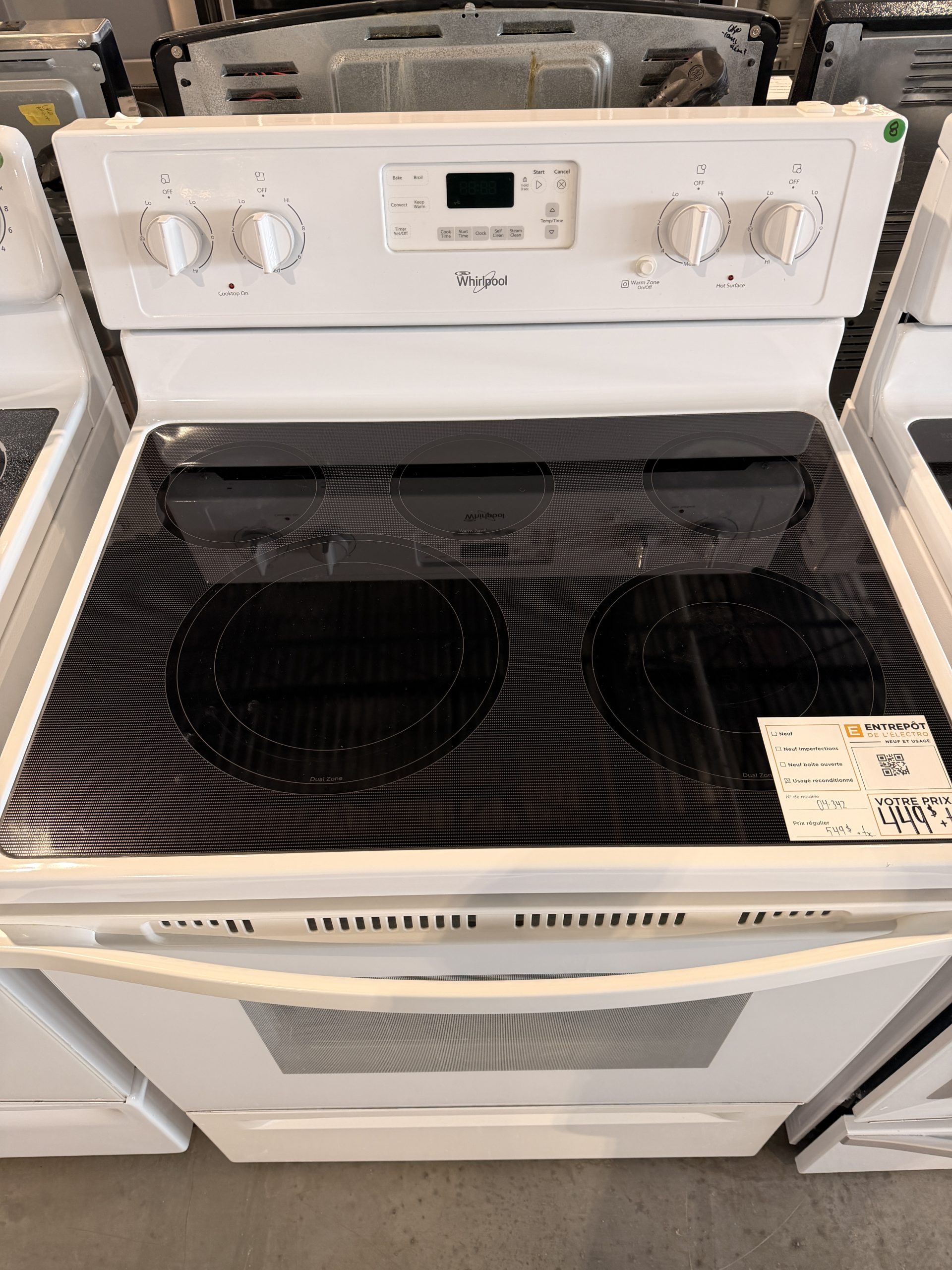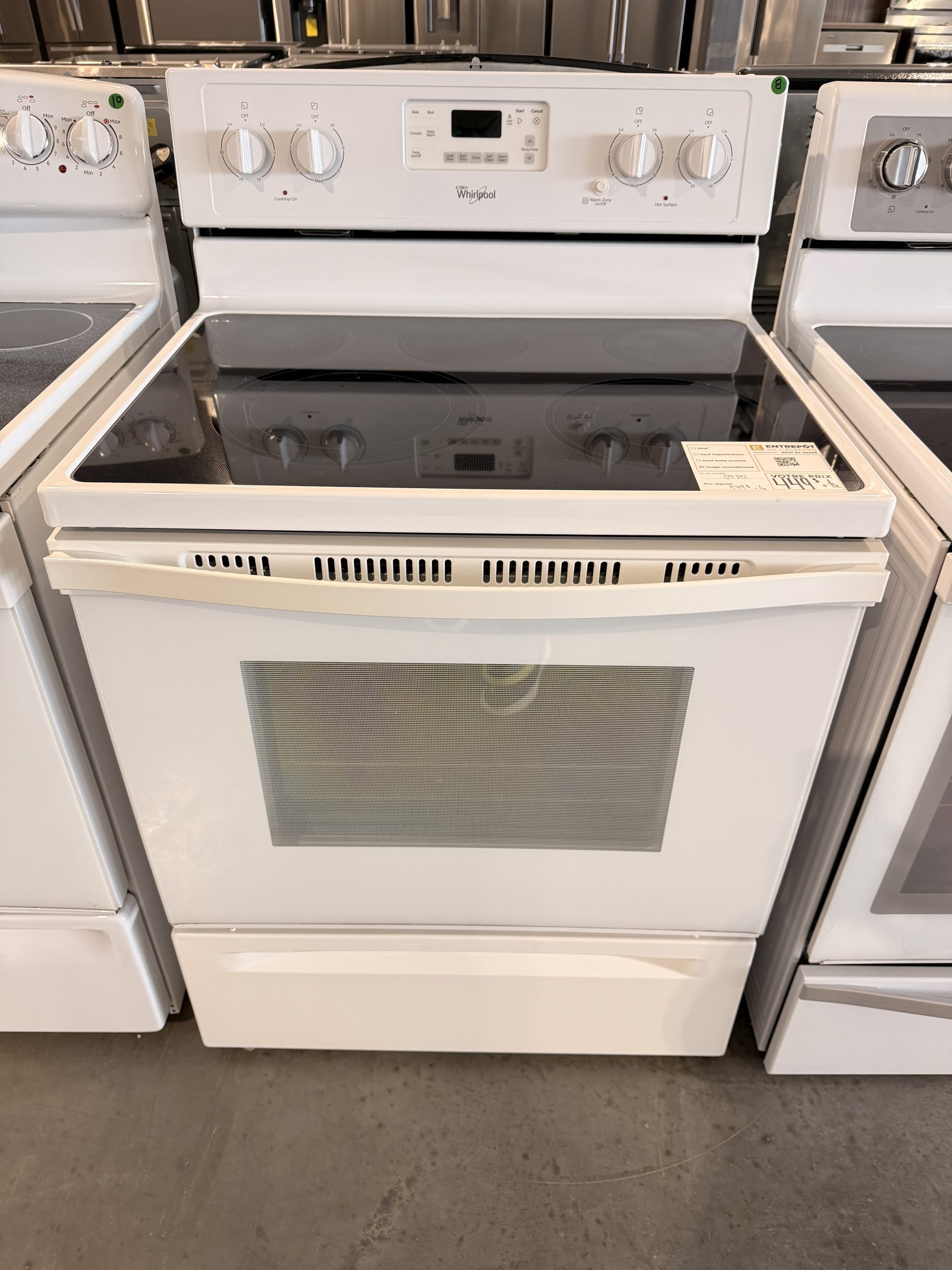 Avec son fini blanc épuré, ses commandes faciles à utiliser et sa surface lisse, cette cuisinière représente une très bonne option pour ceux qui veulent un appareil fiable, propre et fonctionnel sans payer le prix du neuf.