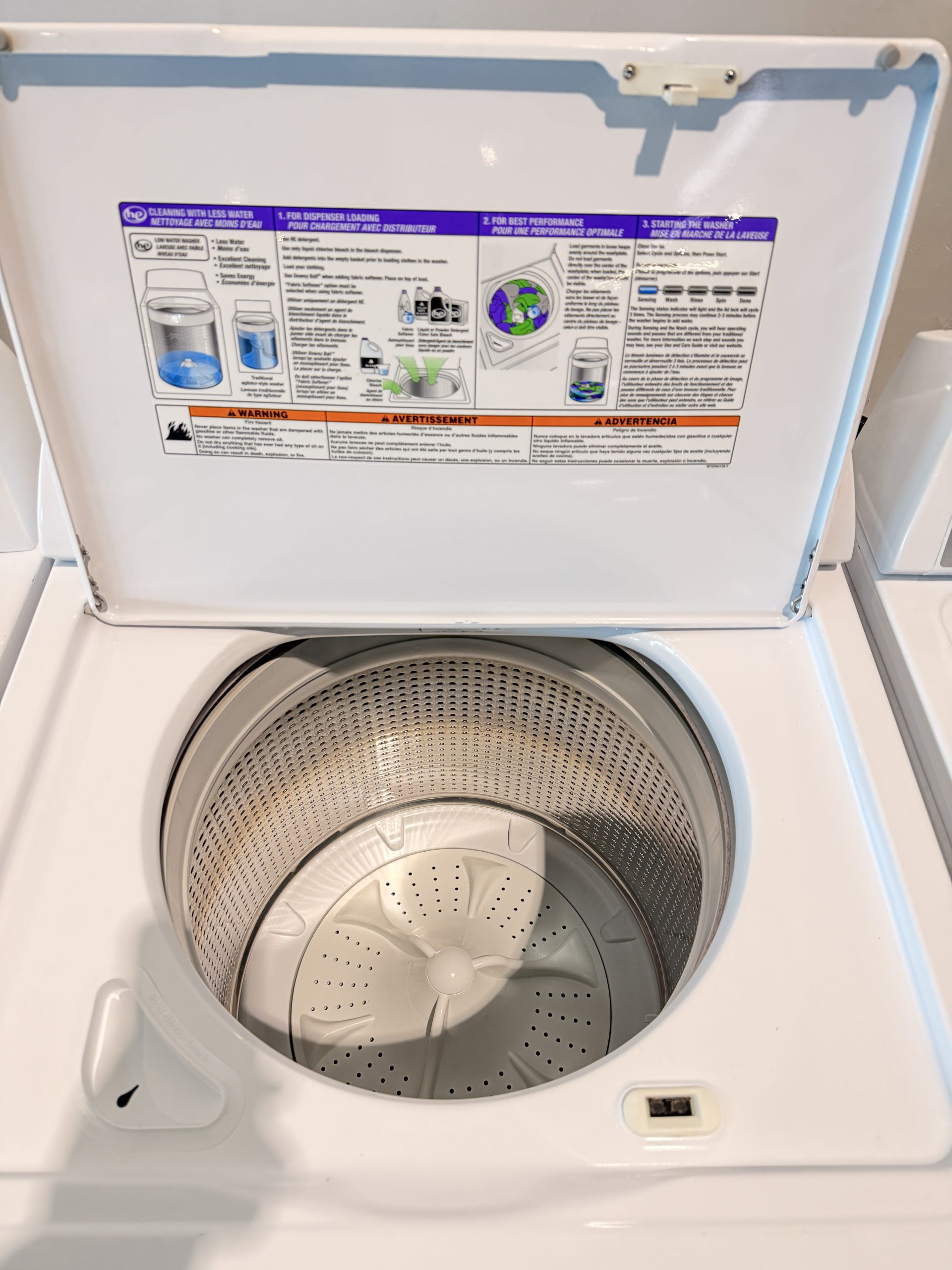 Cette laveuse Whirlpool usagée est un excellent choix pour ceux qui recherchent un appareil fiable, pratique et de grande capacité. Avec sa largeur de 27 pouces et sa conception sans agitateur, elle offre plus d’espace à l’intérieur pour laver de plus grosses brassées, tout en prenant une dimension standard facile à intégrer dans la salle de lavage.