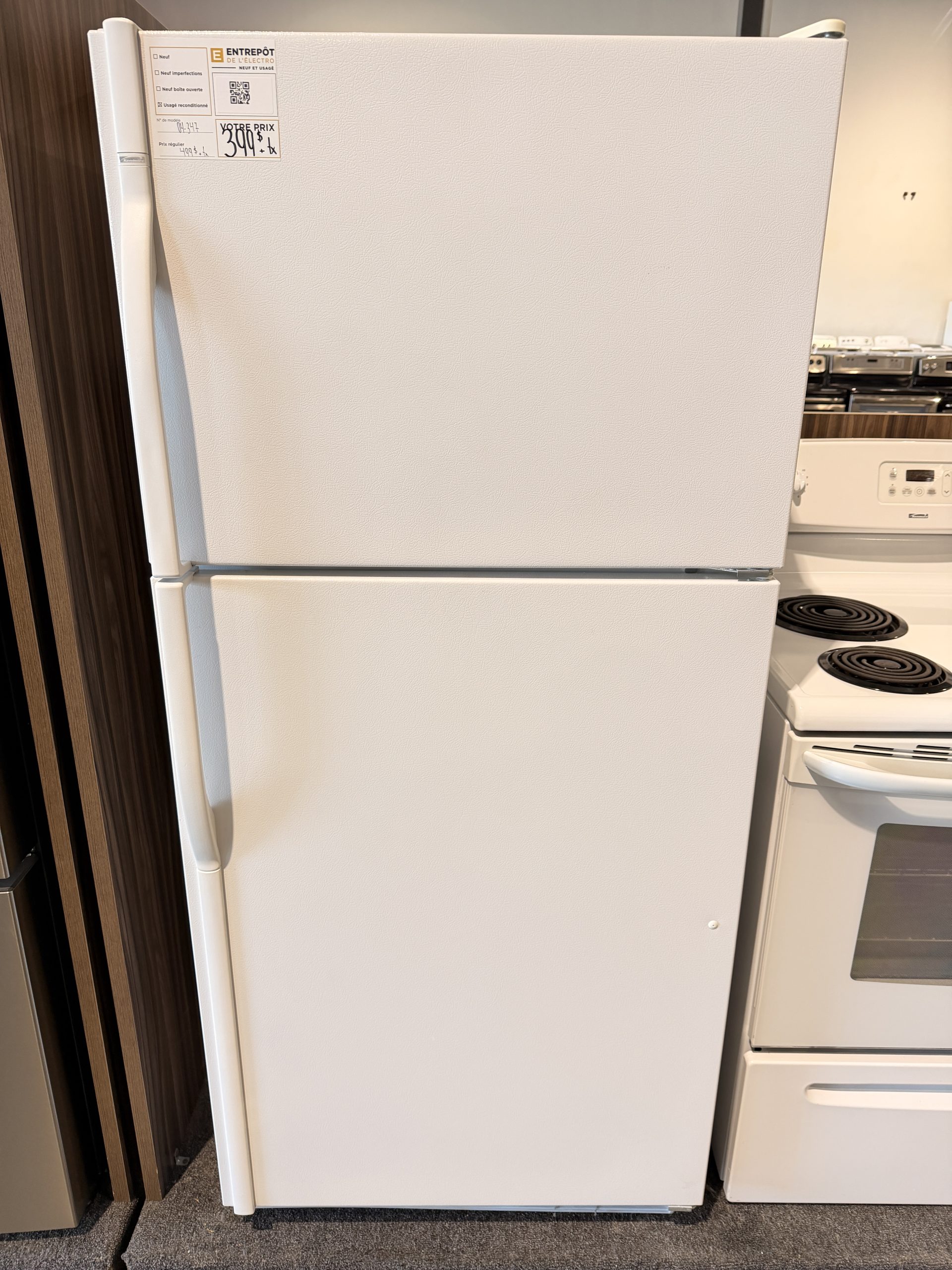Avec son fini blanc, son format facile à intégrer et sa configuration traditionnelle très appréciée, ce réfrigérateur représente une très bonne option pour ceux qui veulent un appareil fonctionnel, durable et sans complication sans payer le prix du neuf.