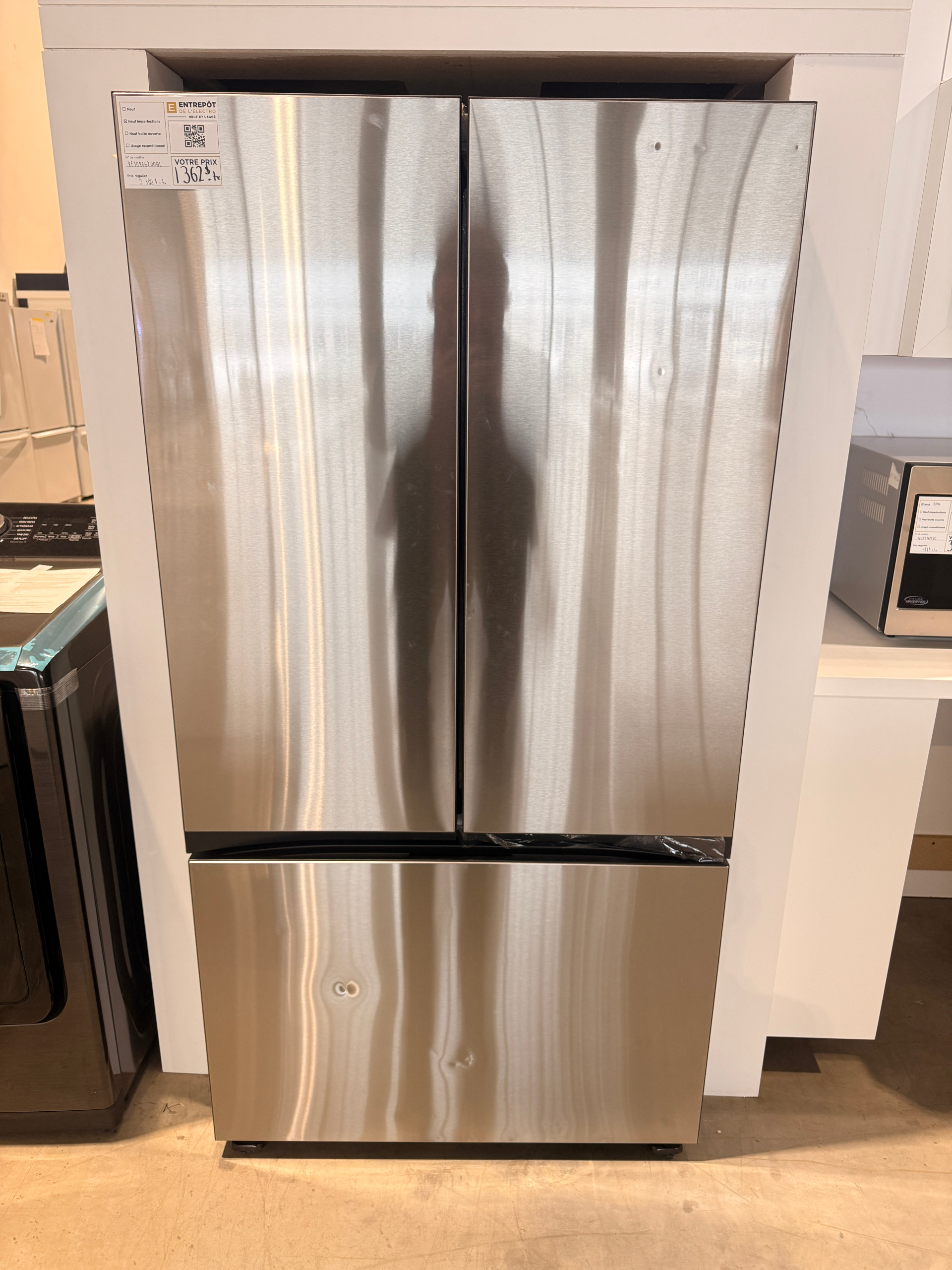Samsung BESPOKE 36 po 23,9 pi3 Réfrigérateur de profondeur de comptoir à porte française à 3 portes en acier inoxydable avec double machine à glaçons automatique